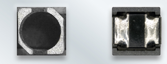 A félhold alakú lábkialakítás ezen méretű induktivitásoknál nagyon népszerű módszer, a galvanizálással felvitt fémréteg alkalmazásával jó forraszthatósági paraméterekkel rendelkezik. Az új gőzöléses eljáráshoz azonban jobban illeszkedik a négyszögletes terminál kialakítás, mely megkönnyíti a NYÁK tervezést és ráadásul az esetek nagy részében kompatibilis az esetleg már meglévő félhold mintázattal is.