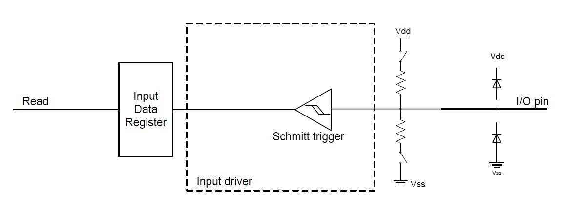 - A beépített pull-up és a pull-down ellenállások választhatók